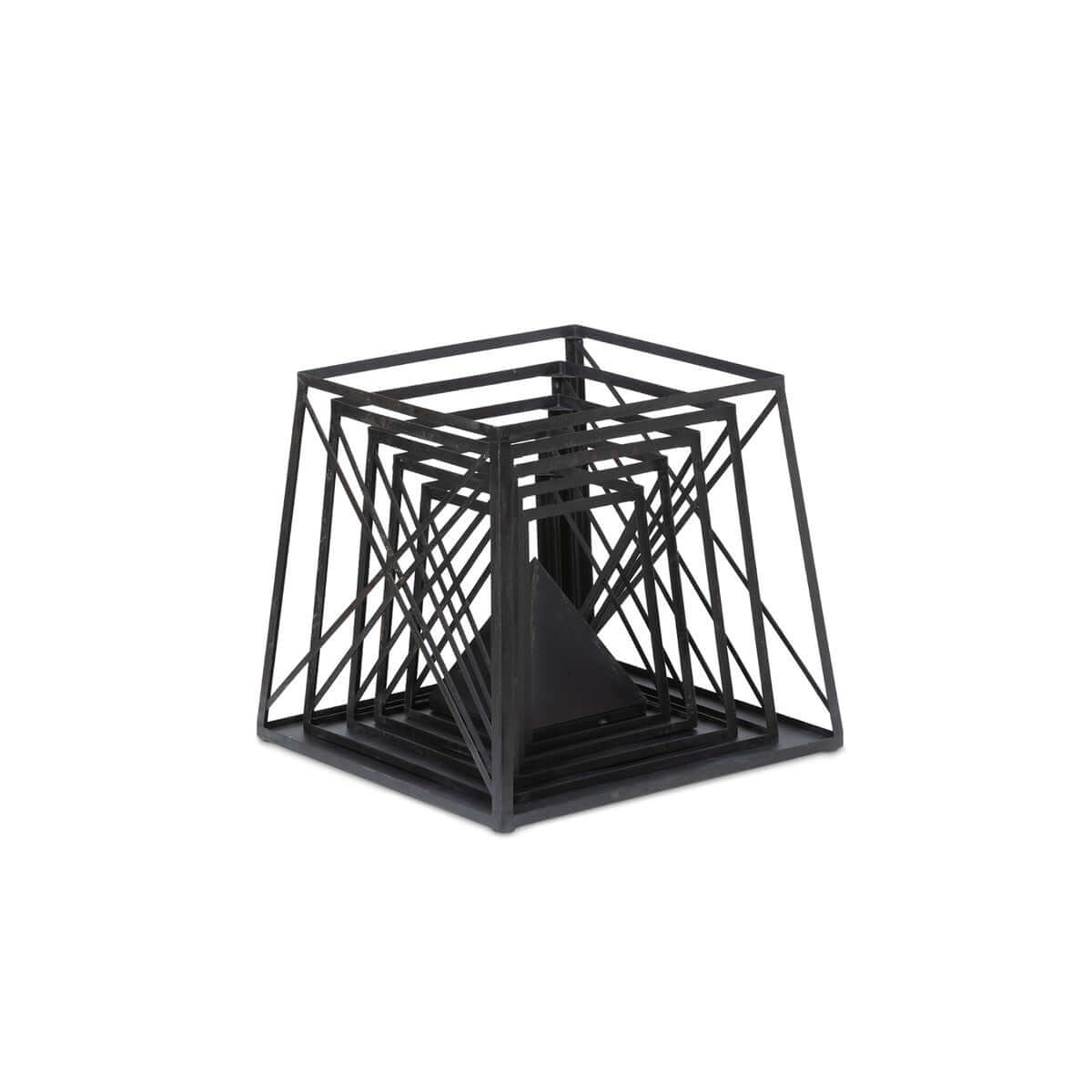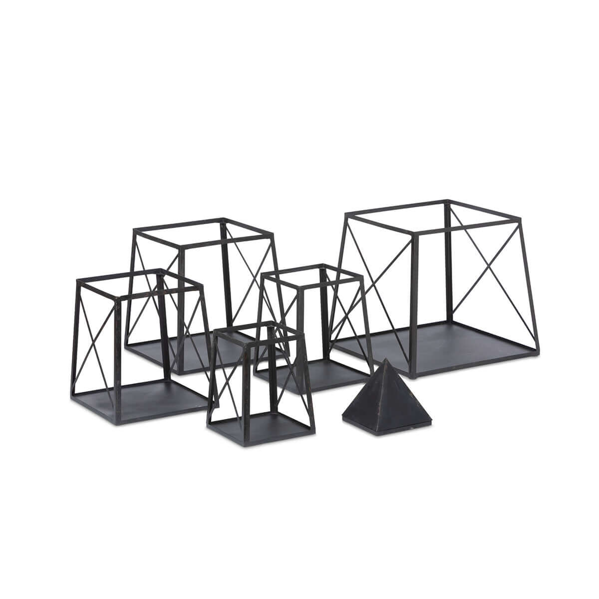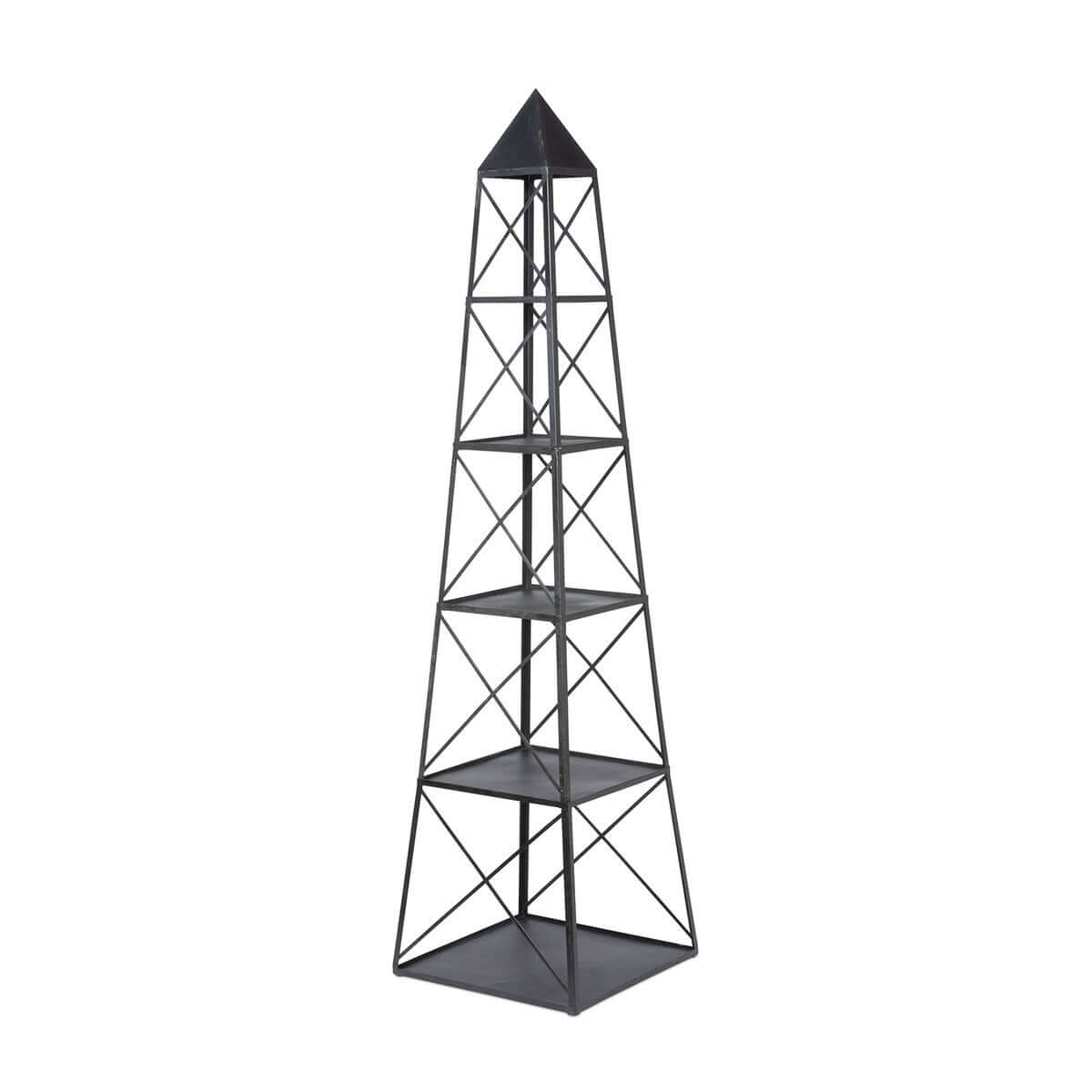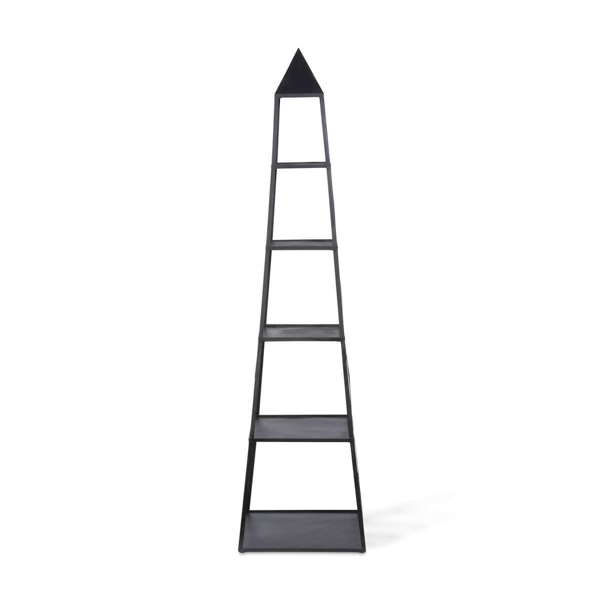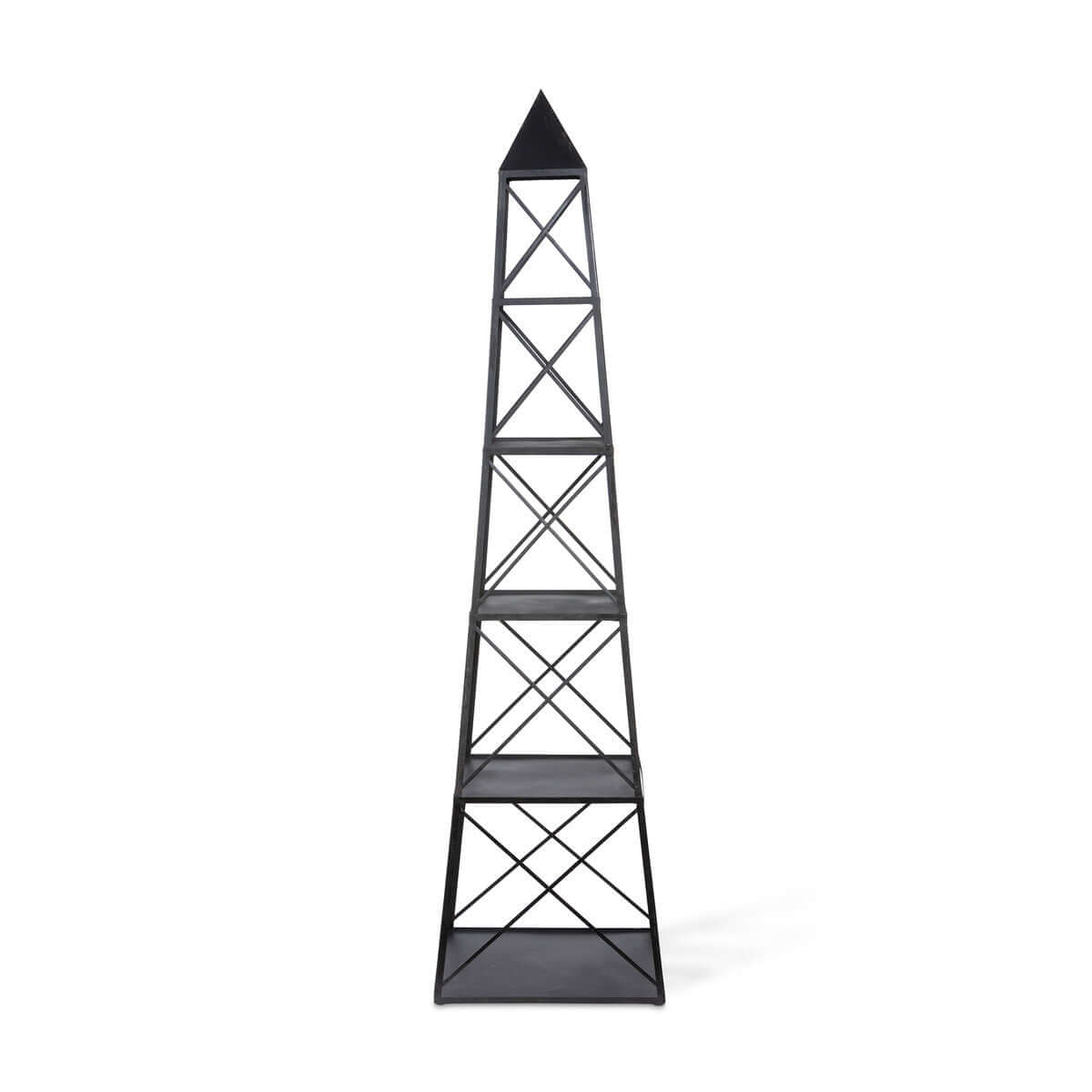 The Stackable Antique Black Obelisk is a lightweight display shelf with ample storage. Its five graduated tiers are crafted of iron accented by crisscross detailing and topped off with a signature pyramidion. Open on two sides, the stackable storage is easy to move and comes apart so that it can be displayed in multiple ways.